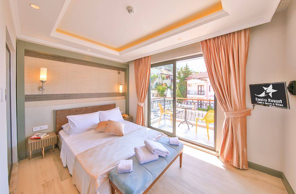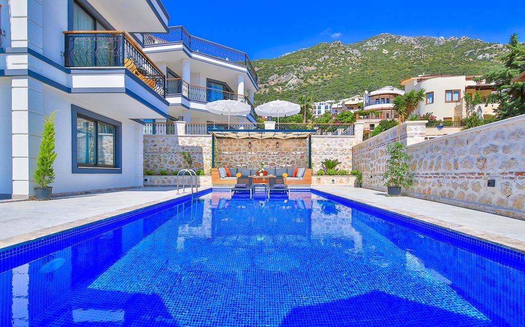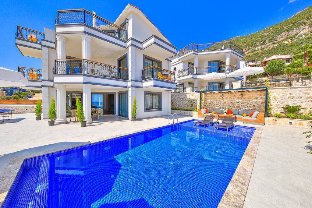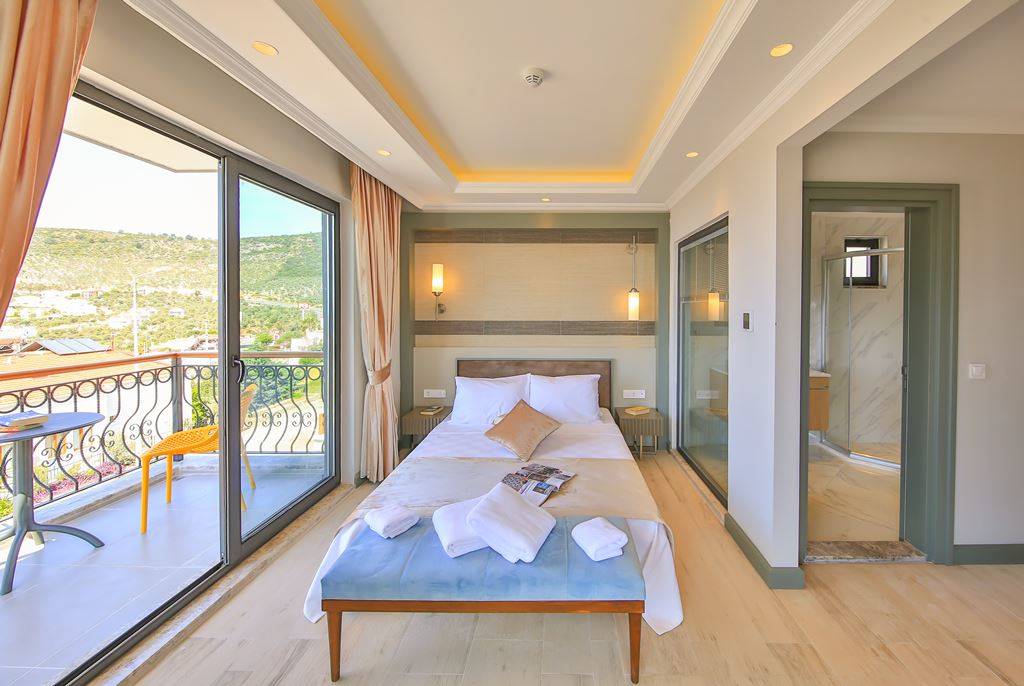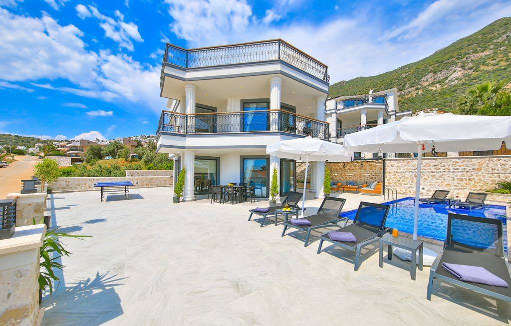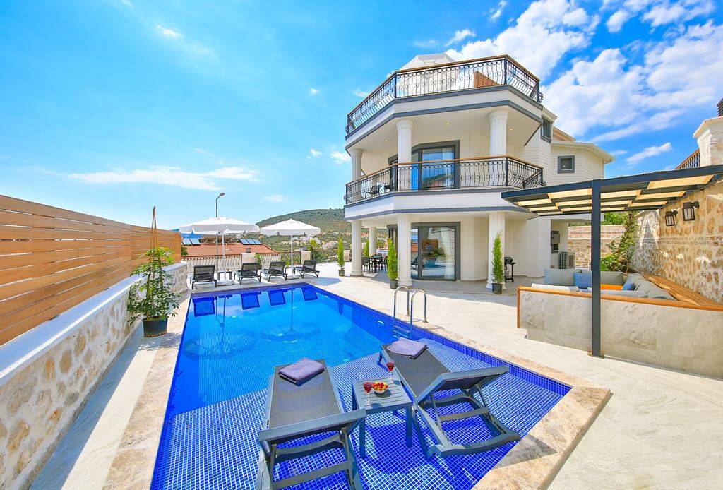 Villa Samira 1 Located in Kalkan Kızıltaş, the modern and simple building limits interior space with its interior and exterior architecture. The ground floor of our villas attracts attention with its spacious and spacious architecture. We have 3 bedrooms and our villas have bathrooms in every room. The jacuzzi on the roof terrace will relax your soul with the view of the sea and relax your body comfortably as it has given water.