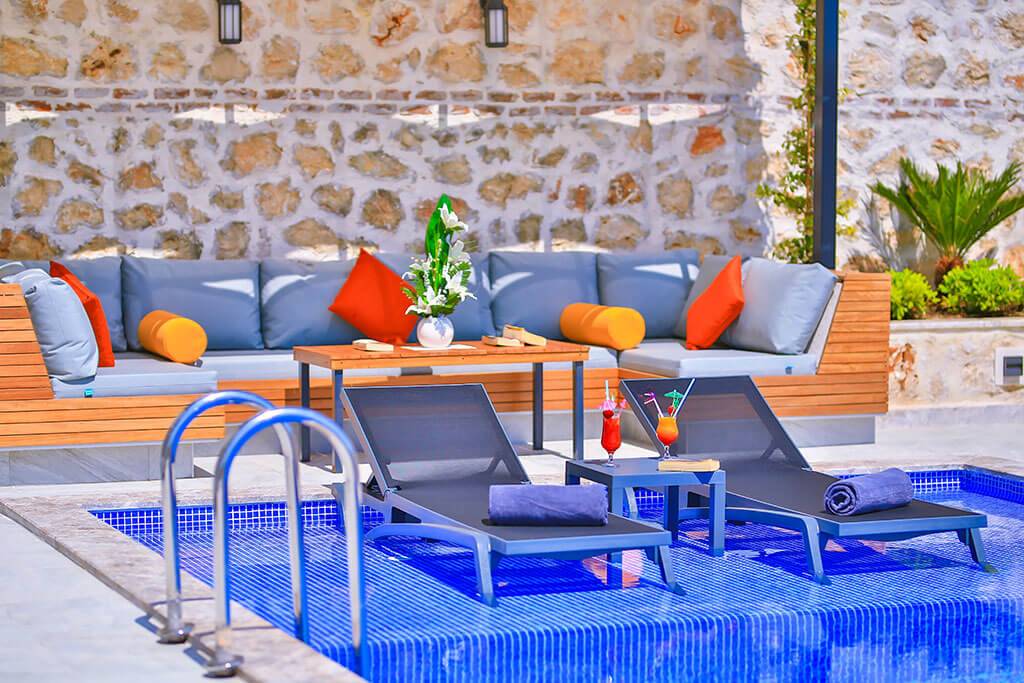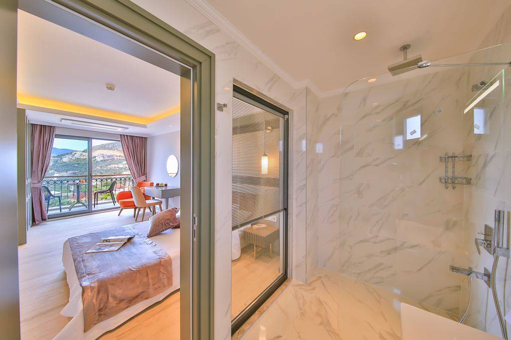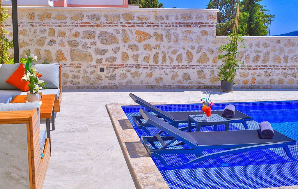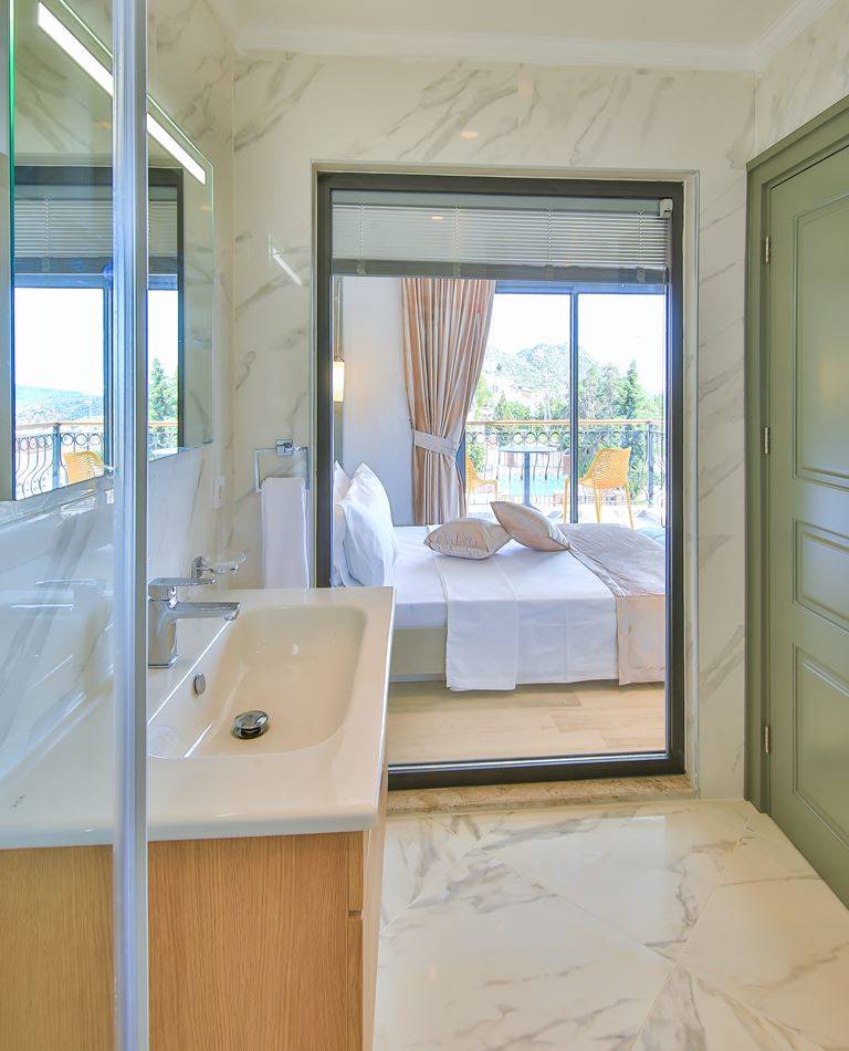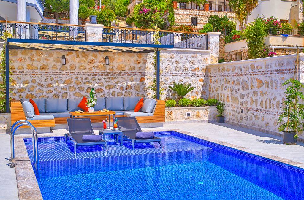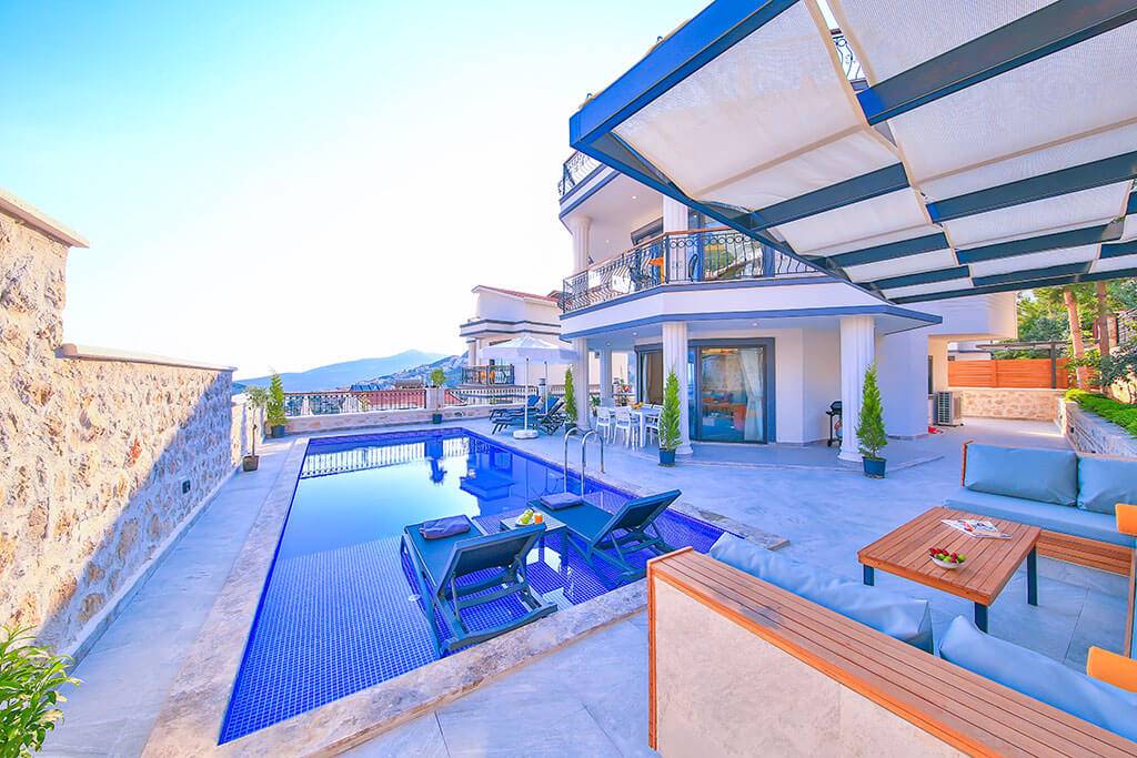 Villa Samira 1 Located in Kalkan Kızıltaş, the modern and simple building limits interior space with its interior and exterior architecture. The ground floor of our villas attracts attention with its spacious and spacious architecture. We have 3 bedrooms and our villas have bathrooms in every room. The jacuzzi on the roof terrace will relax your soul with the view of the sea and relax your body comfortably as it has given water.